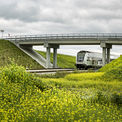 The railway line will result in a faster journey time between Copenhagen and Hamburg, switch freight and travellers from road to rail and cut CO2 emissions. The project consisted of a total of 20 bridge constructions, built either as concrete frames cast in situ or as prefabricated elements. This ensured a fast replacement of the existing structures.